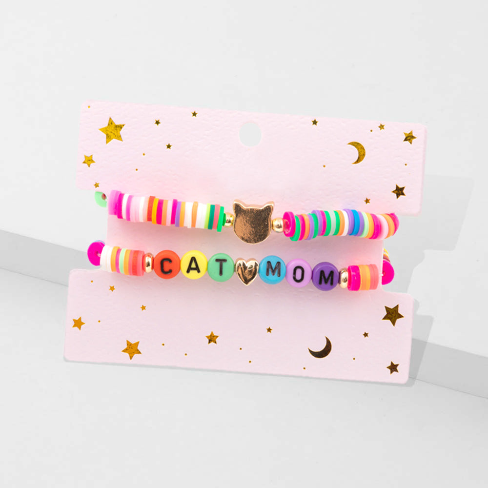 iLLASPARKZ 2PCS - CAT MOM Heishi Beaded Stretch Bracelets