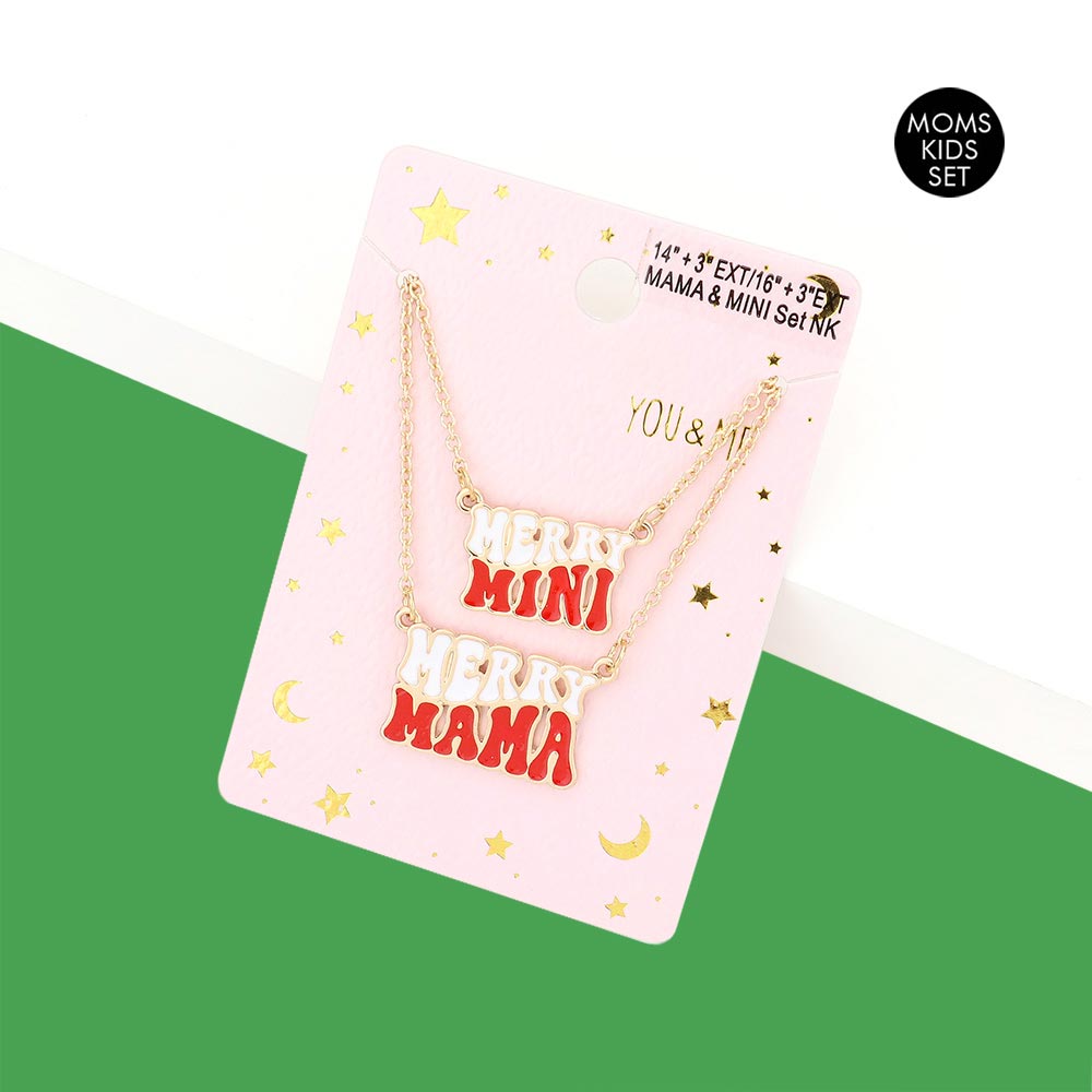 iLLASPARKZ 2PCS - Christmas MERRY MINI MAMA Message Pendant Moms and Kids Set Necklaces