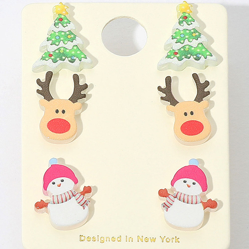 iLLASPARKZ 3Pairs - Christmas Tree Reindeer Snowman Stud Earring Set