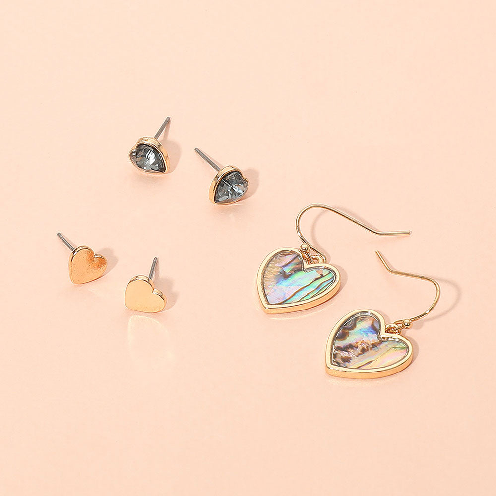 iLLASPARKZ 3Pairs - Metal Abalone Heart Earring Set