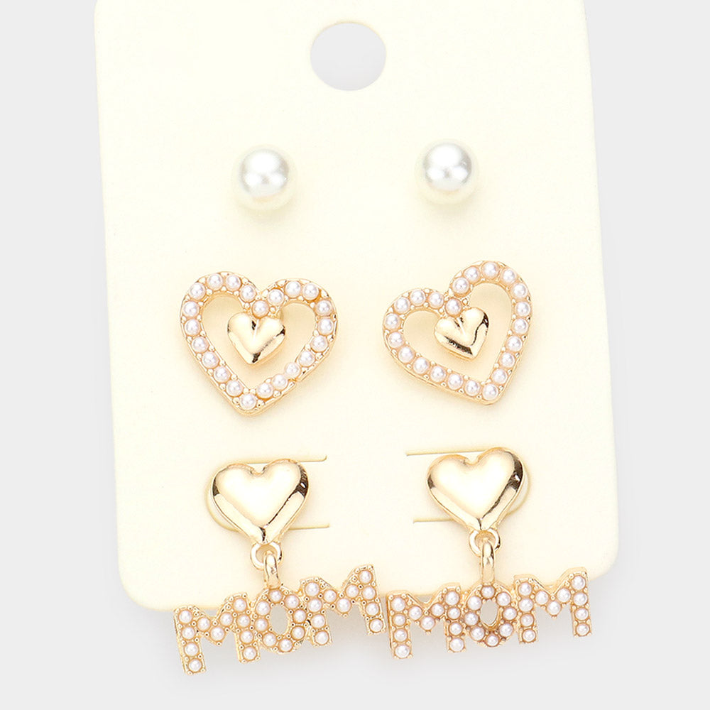 iLLASPARKZ 3Pairs - Pearl Embellished Heart MOM Earrings