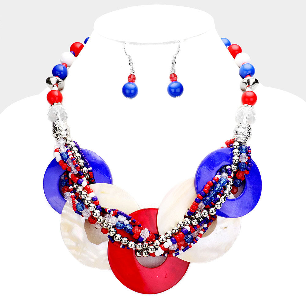 iLLASPARKZ American USA Flag Marbled Round Link Necklace