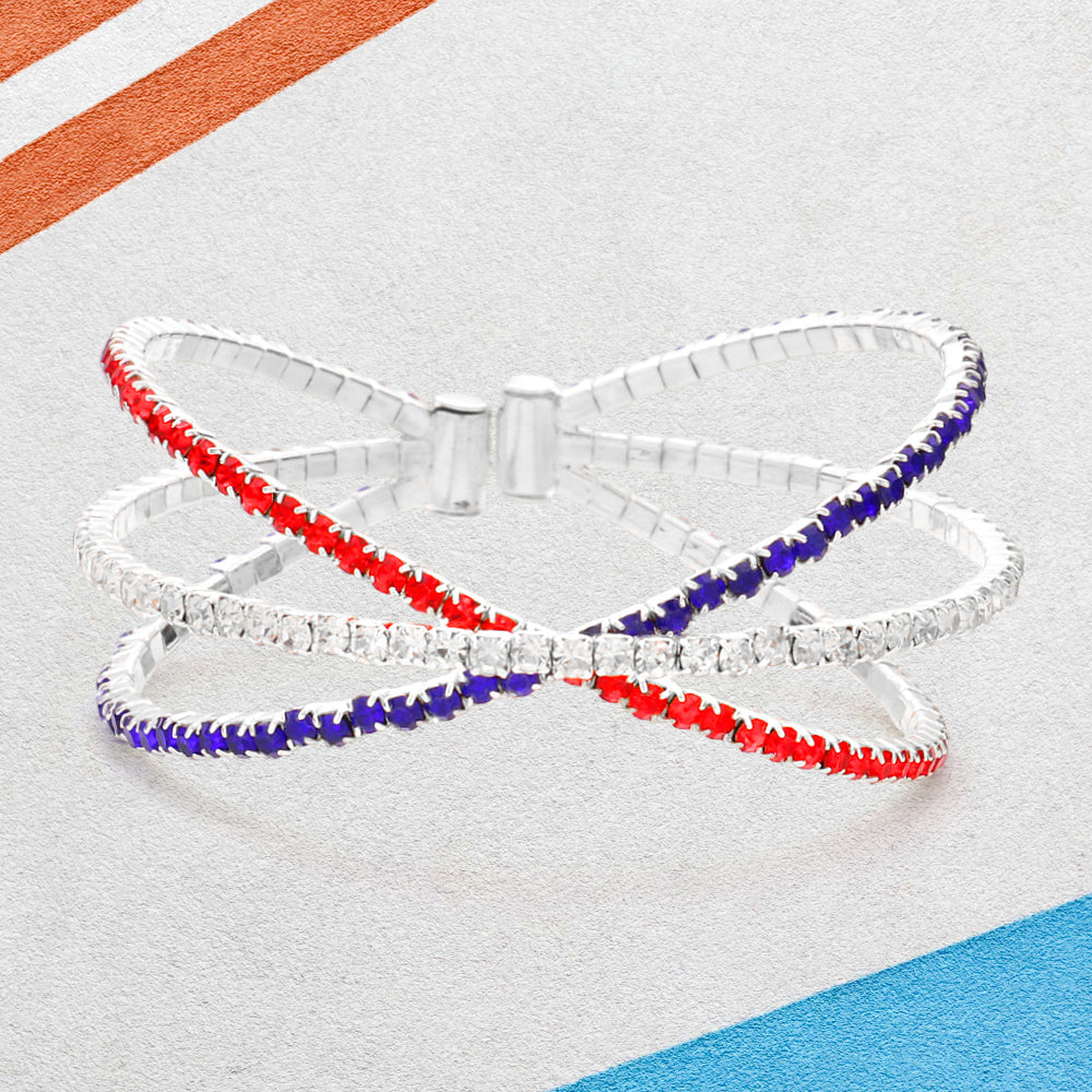 iLLASPARKZ American USA Flag Rhinestone Cuff Evening Bracelet