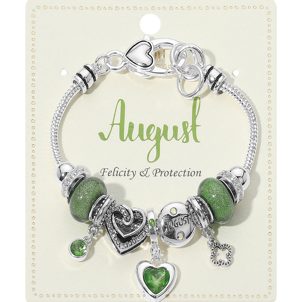 Embrace August birthdays with this elegant charm bracelet featuring heart motifs and sparkling bead details. Representing felicity and protection, it's the perfect gift to honor someone special.