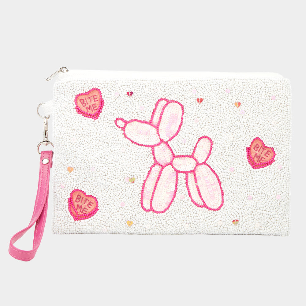 iLLASPARKZ Balloon Dog Heart Beaded Wristlet Clutch Bag