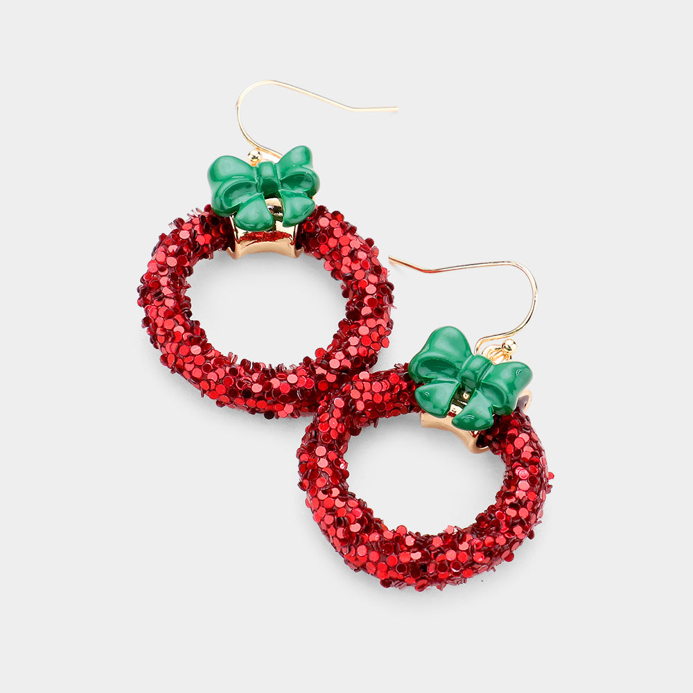 iLLASPARKZ Bow Bling Christmas Wreath Dangle Earrings