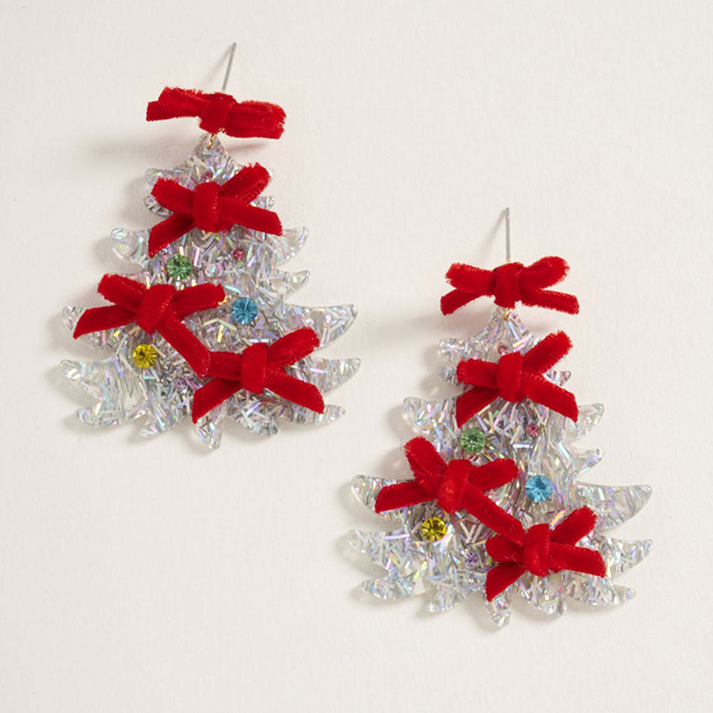 iLLASPARKZ Bow Embellished Christmas Tree Dangle Earrings