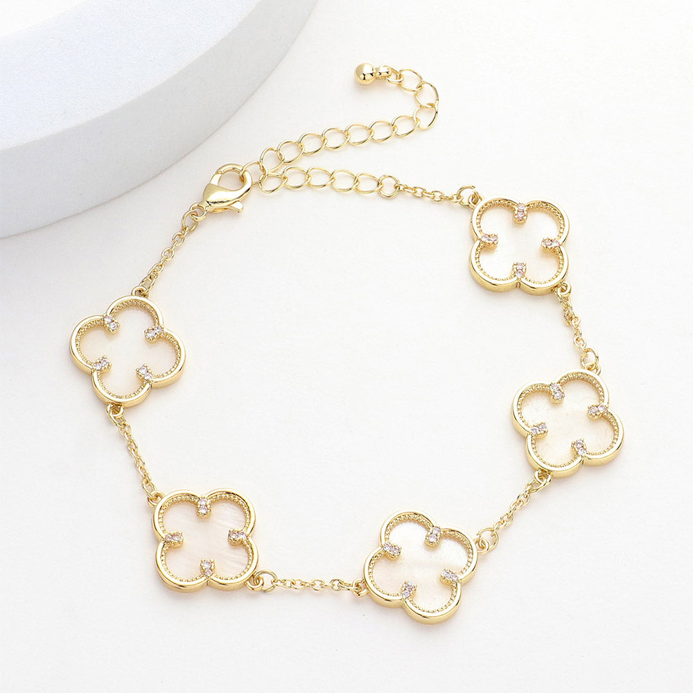 iLLASPARKZ Brass Metal Mother Of Pearl Quatrefoil Station Bracelet