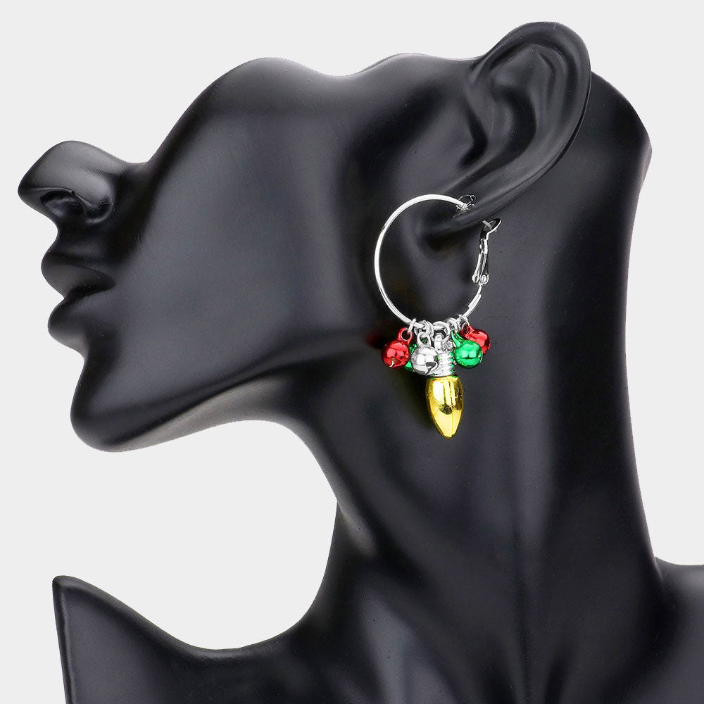 iLLASPARKZ Christmas Bell Bulb Charm Metal Hoop Earrings
