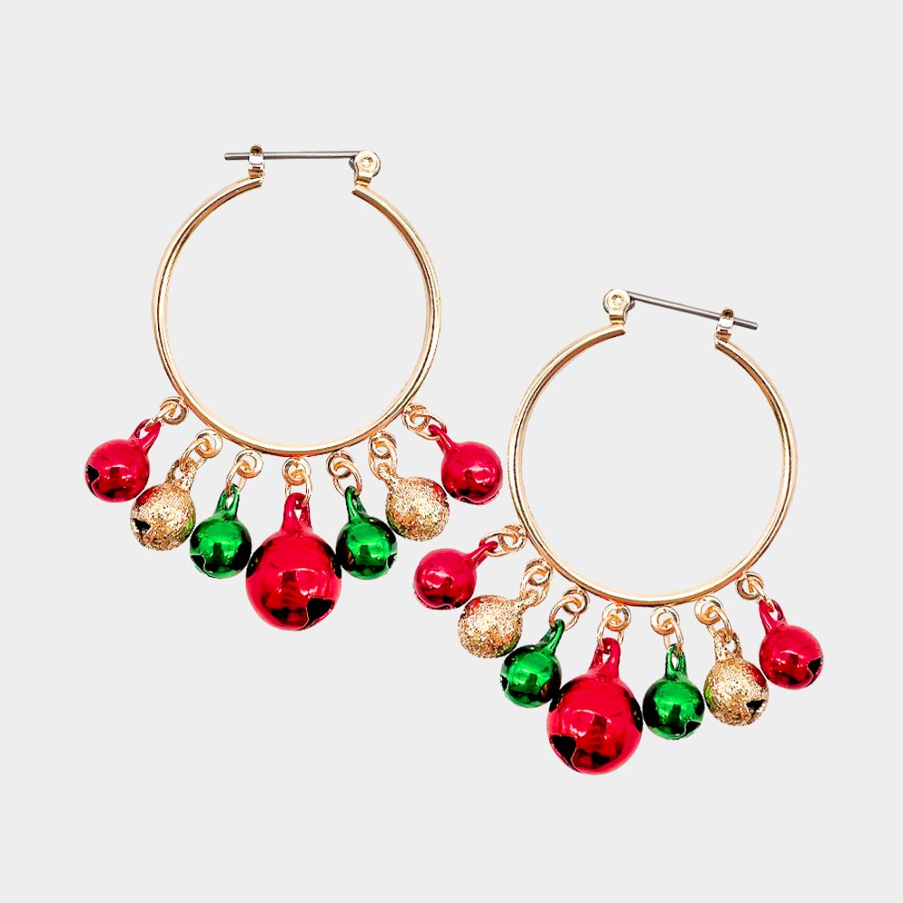 iLLASPARKZ Christmas Jingle Bell Metal Hoop Pin Catch Earrings