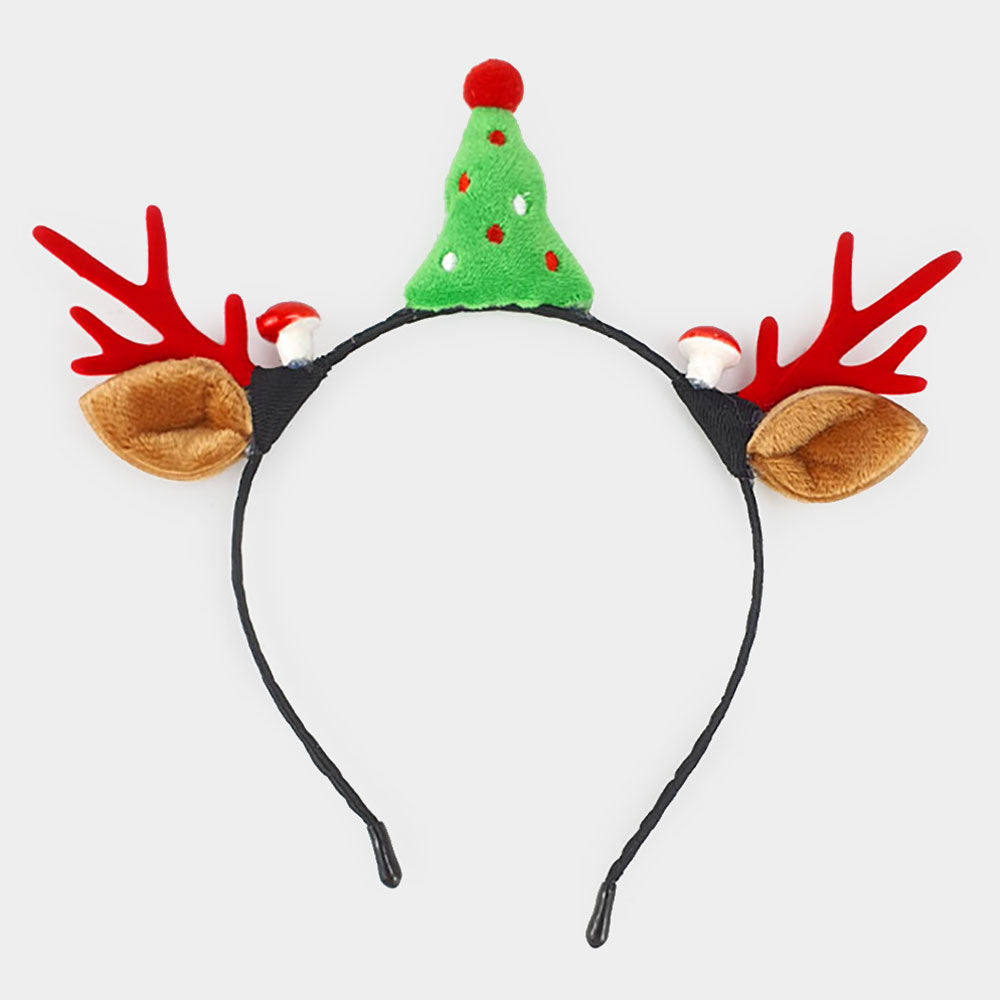 Celebrate the holidays with this festive Christmas reindeer antler headband topped with a playful tree accent. A fun party accessory for kids and adults, perfect for Christmas gatherings, photos, and spreading holiday cheer all season long.