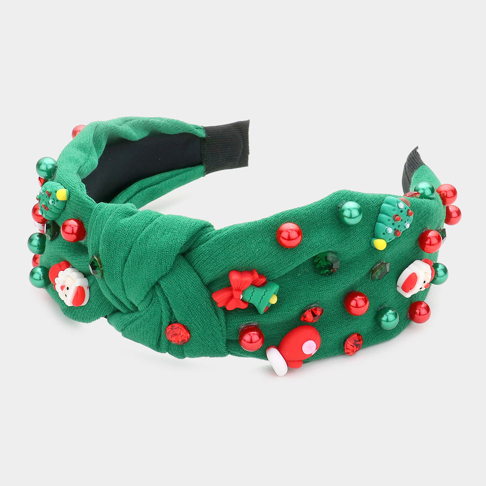 iLLASPARKZ Christmas Tree Santa Claus Jingle Bell Glove Pearl Stone Embellished Knot Burnout Headband