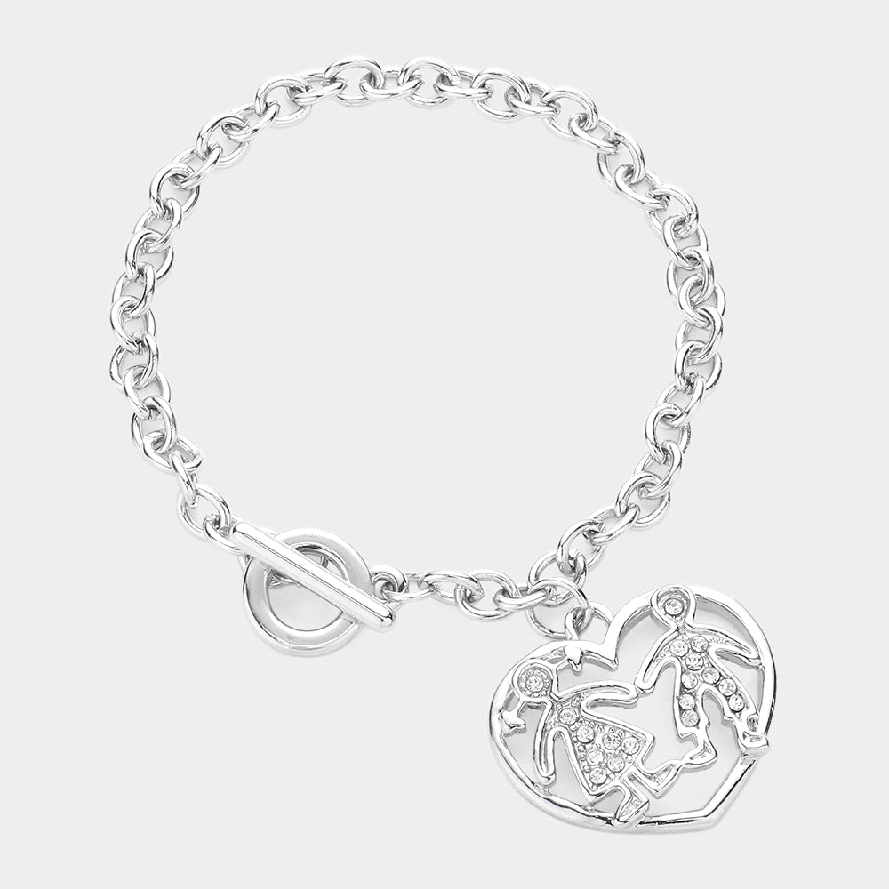 iLLASPARKZ Couple Accented Heart Charm Toggle Bracelet