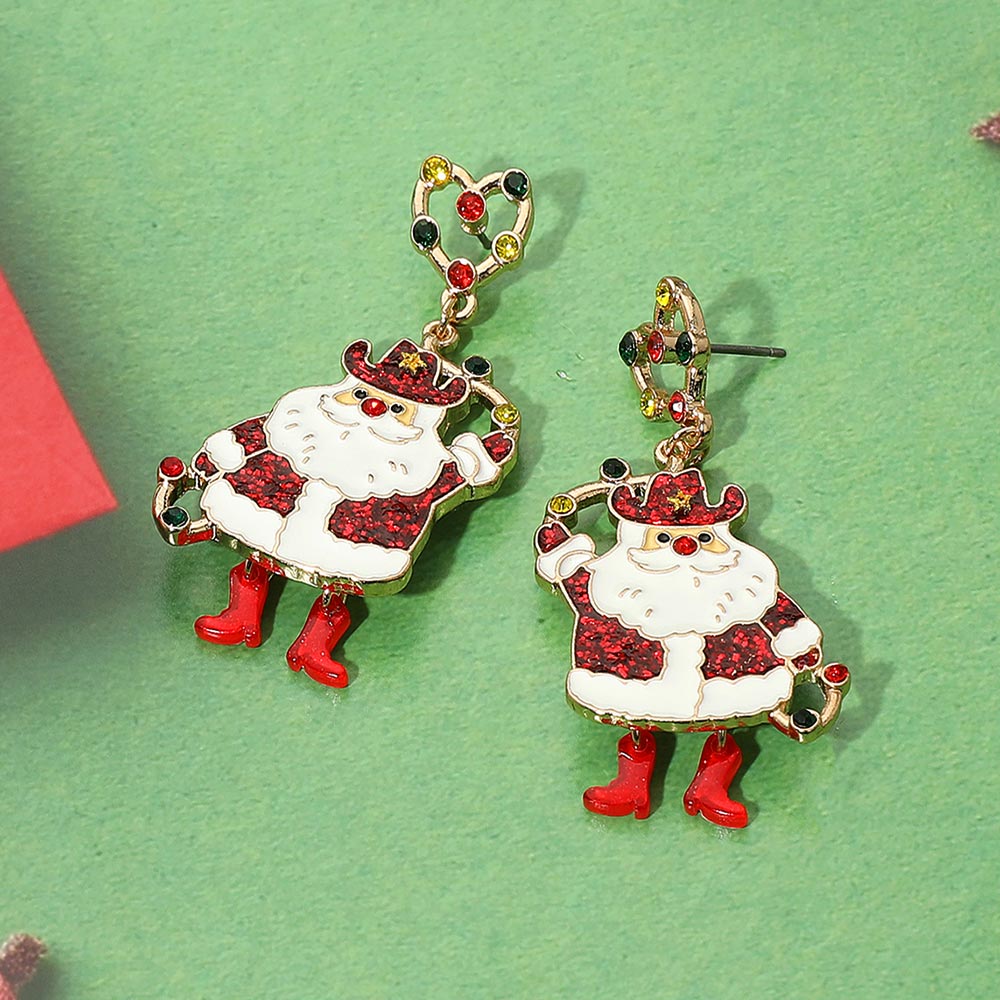 Add holiday cheer with these playful cowboy Santa earrings, featuring jolly Santa figures in boots and hats adorned with twinkling light accents. A fun accessory to brighten your festive look and perfect for holiday events or themed parties.