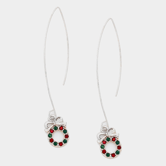 iLLASPARKZ Crystal Christmas wreath bow pull through earrings