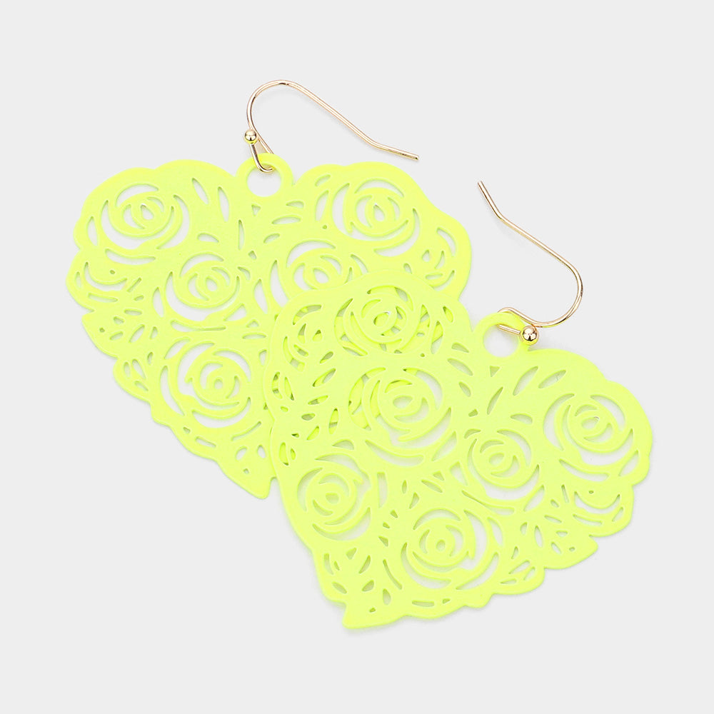 iLLASPARKZ Cut Out Flower Detailed Brass Metal Heart Dangle Earrings