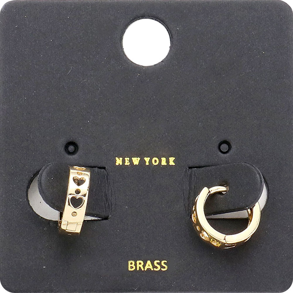iLLASPARKZ Cut Out Heart Detail Brass Metal Hoop Huggie Earrings
