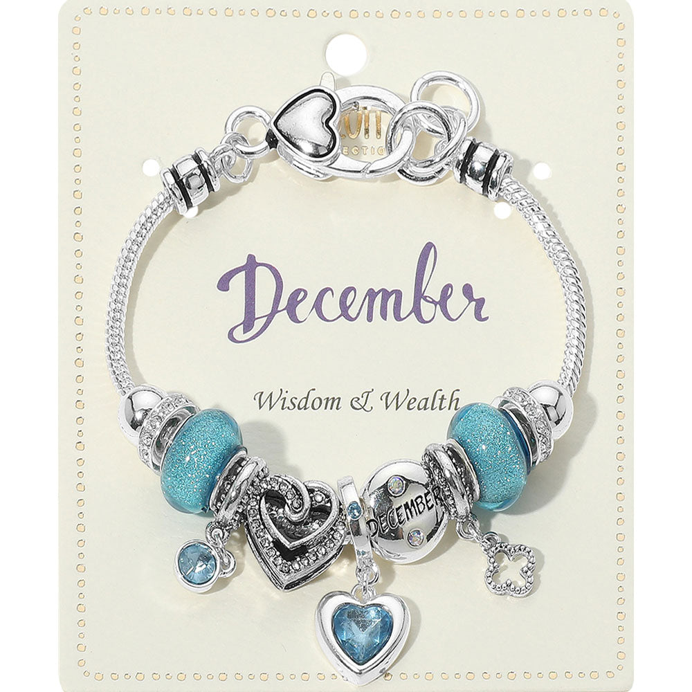 Celebrate December with this elegant birthstone charm bracelet featuring heart and crystal accents. A symbol of wisdom and wealth, it's the perfect gift or accessory to honor your birth month in style.