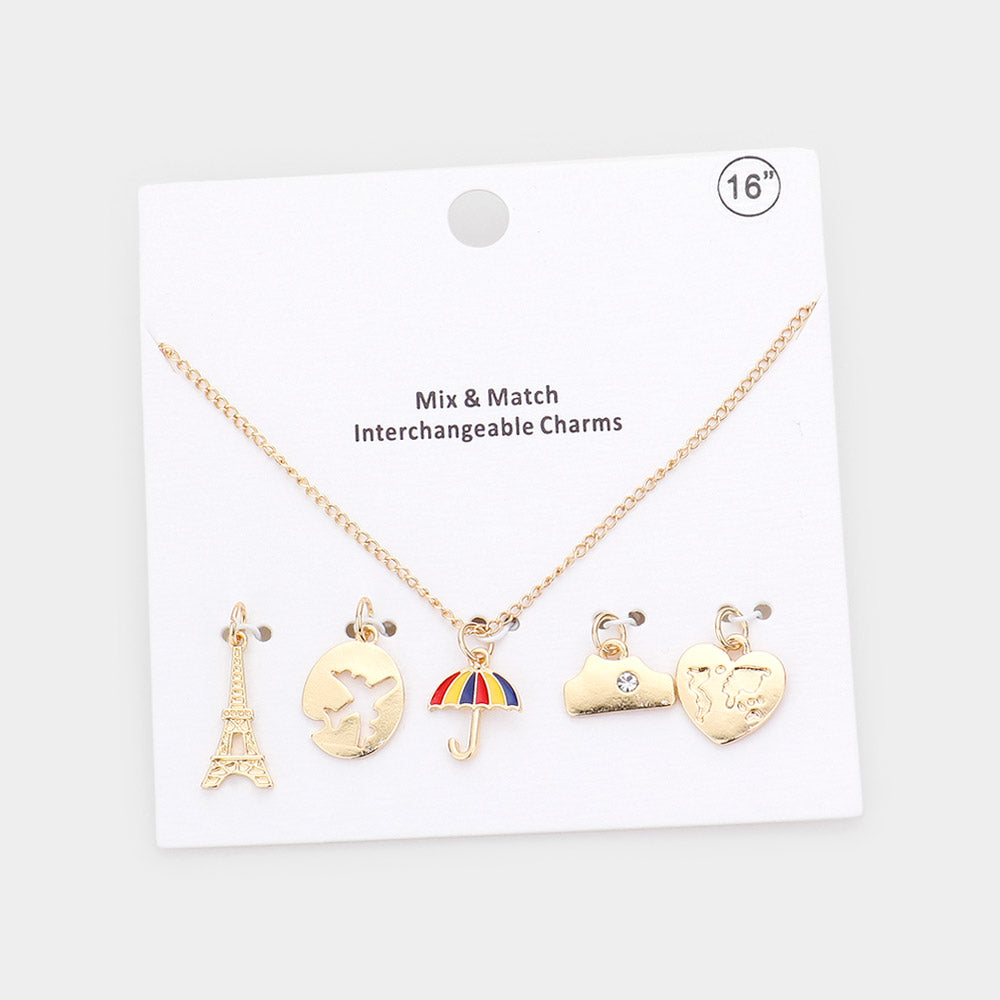 iLLASPARKZ Eiffel Tower Airplane Umbrella Heart Interchangeable Pendant Necklace