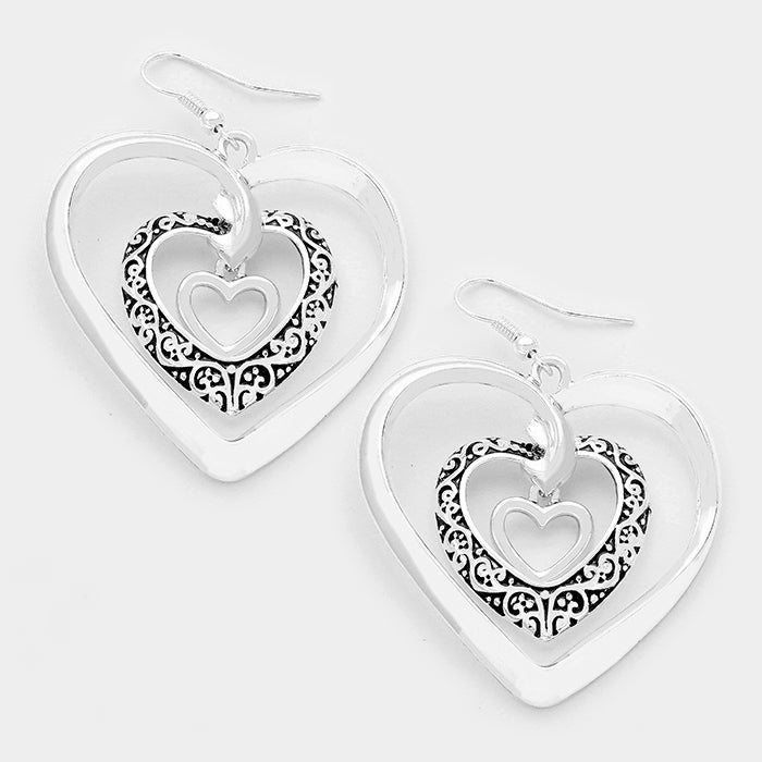 iLLASPARKZ Embossed metal filigree triple heart hoop earrings