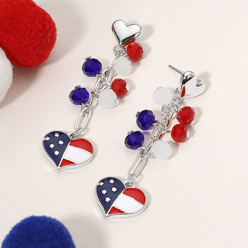 iLLASPARKZ Enamel American USA Flag Heart Beaded Drop Chain Dangle Earrings