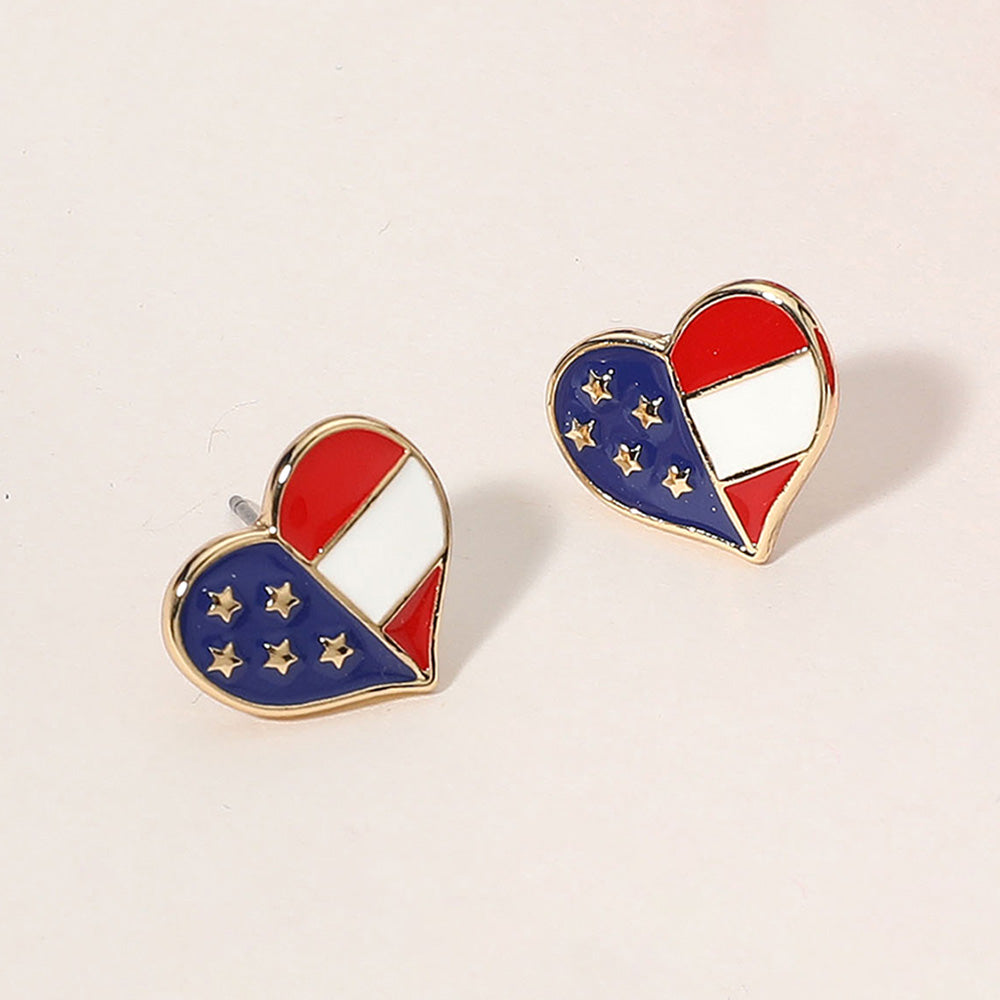 iLLASPARKZ Enamel American USA Flag Heart Stud Earrings