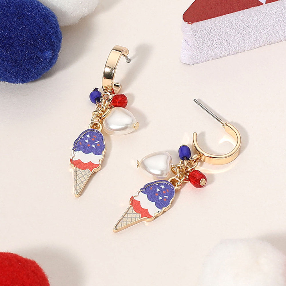 iLLASPARKZ Enamel American USA Flag Ice Cream Cone Pearl Heart Beads Charm Dangle Earrings