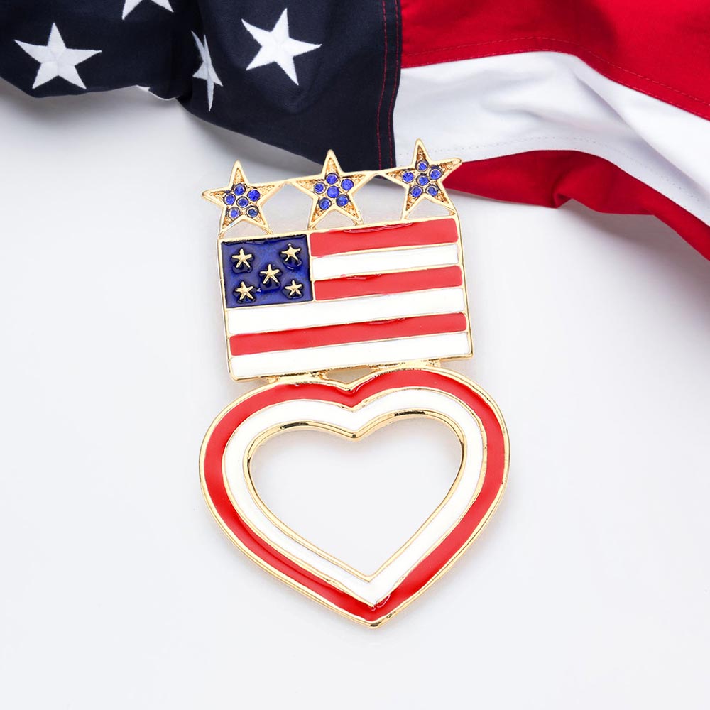 iLLASPARKZ Enamel American USA Flag Open Heart Pin Brooch