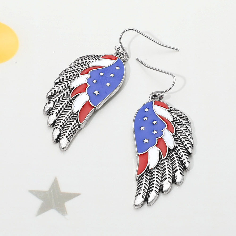 Patriotic wing-shaped earrings featuring intricate detailing and festive design. A bold accessory for celebrating national pride, ideal for events, holidays, and themed occasions.