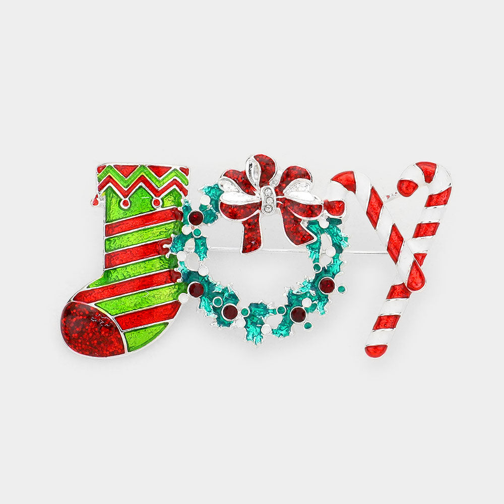 iLLASPARKZ Enamel Christmas Socks Wreath Cane Pin Brooch