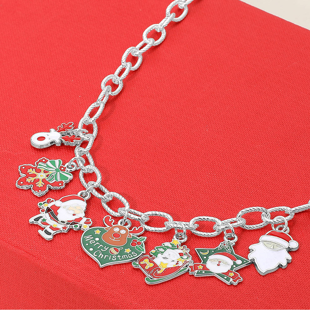 Celebrate the festive season with this Christmas charm necklace, featuring Santa, reindeer, snowman, and holiday-themed pendants. A cheerful accessory perfect for parties, gifts, or seasonal outfits.