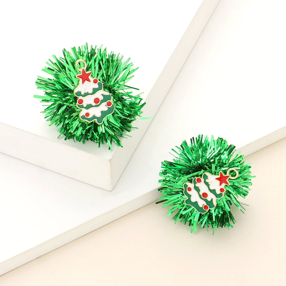 iLLASPARKZ Enamel Christmas Tree Tinsel Earrings