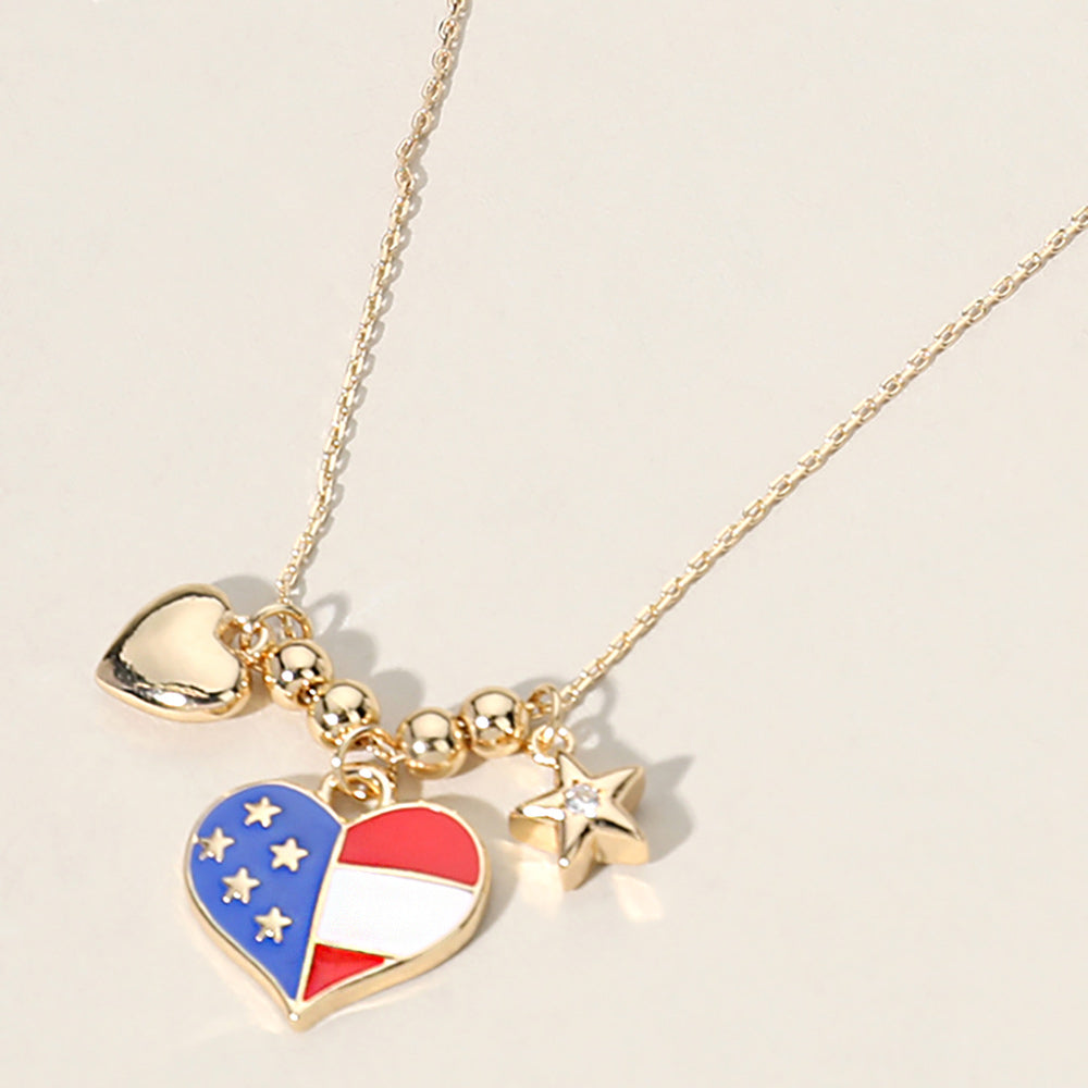 iLLASPARKZ Enamel Heart American USA Flag Metal Star Charm Pendant Necklace