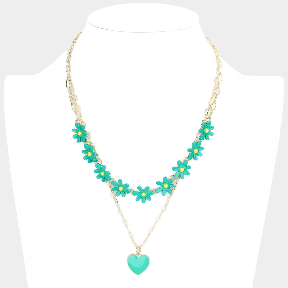 iLLASPARKZ Enamel Heart Pendant Flower Link Double Layered Necklace