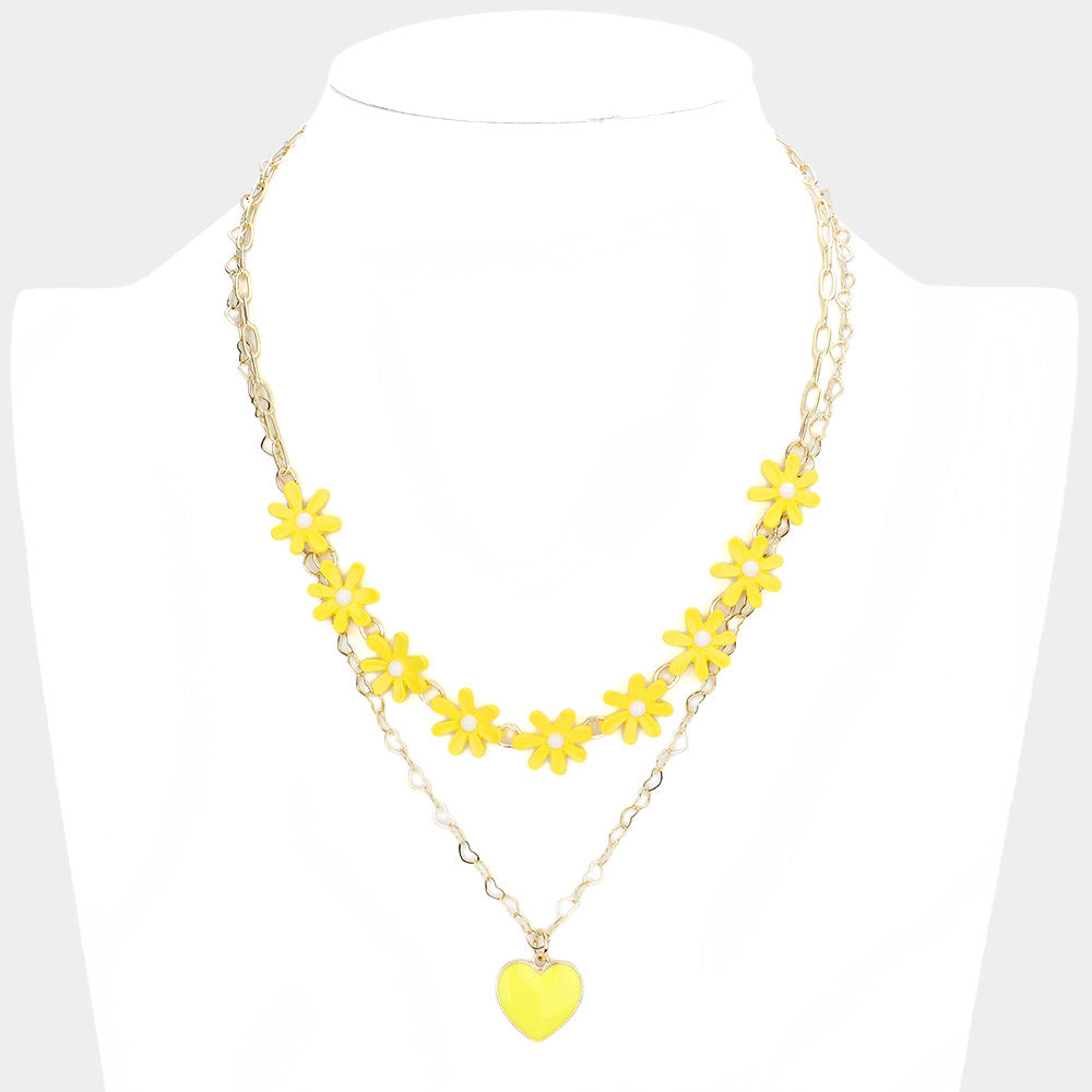 iLLASPARKZ Enamel Heart Pendant Flower Link Double Layered Necklace