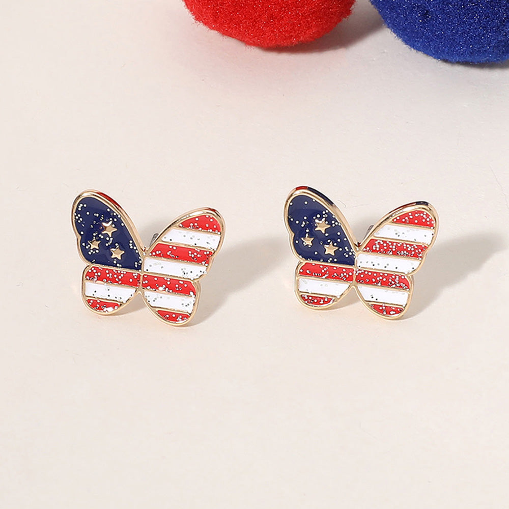 iLLASPARKZ Enamel Sparkly American USA Flag Butterfly Stud Earrings