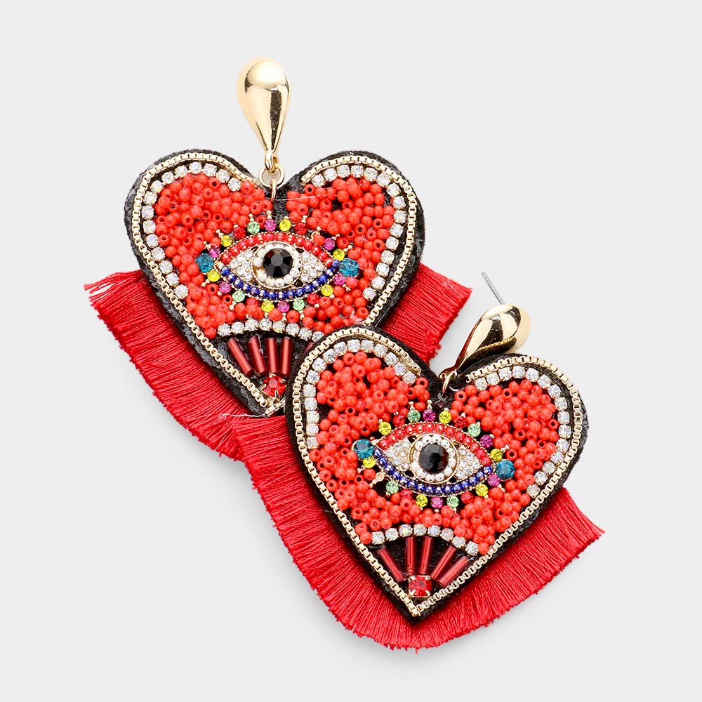 iLLASPARKZ Faceted Beaded Heart Tassel Earrings