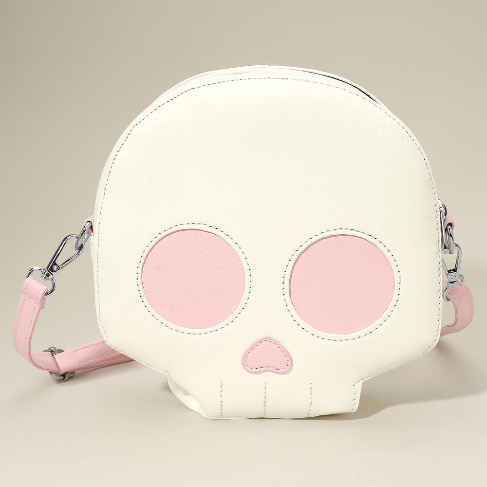 Make spooky adorable with this white and pink skull crossbody bag! Features soft pastel tones, an adjustable strap, and a roomy interior—perfect for Halloween or everyday goth-chic style.