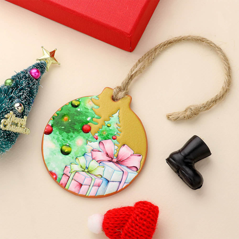 iLLASPARKZ Faux Leather Embossed Christmas Tree Gifts Round Christmas Tree Ornament