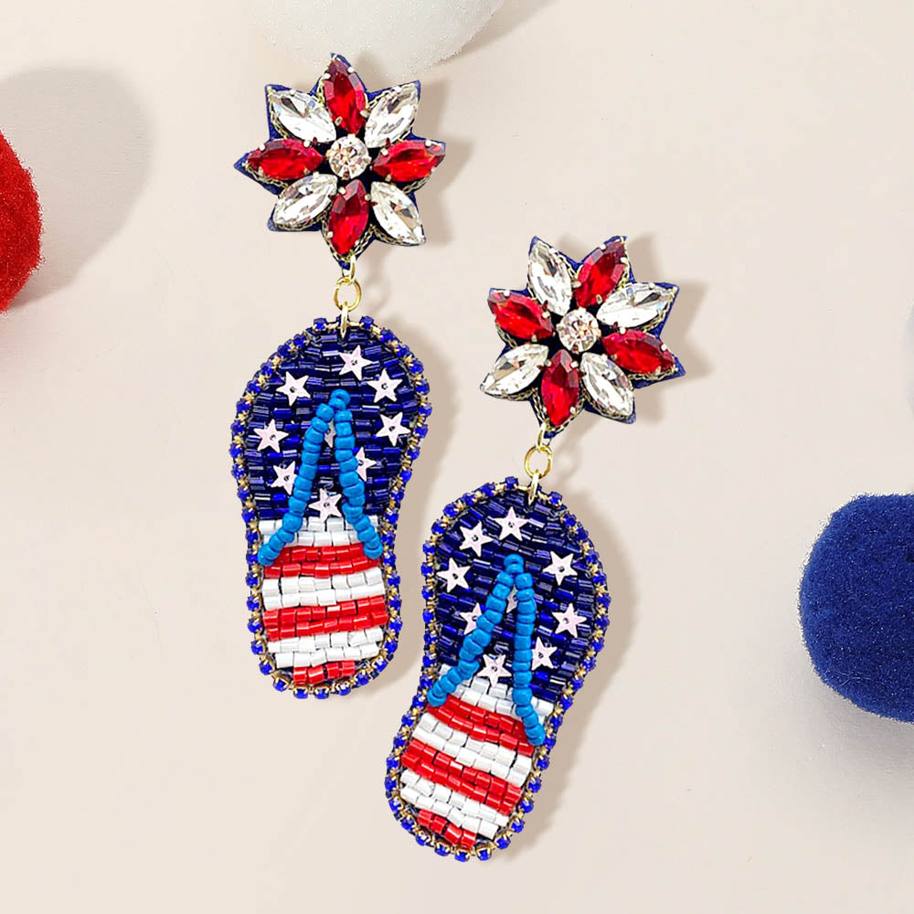 iLLASPARKZ Felt Back American USA Flag Flip Flop Dangle Earrings