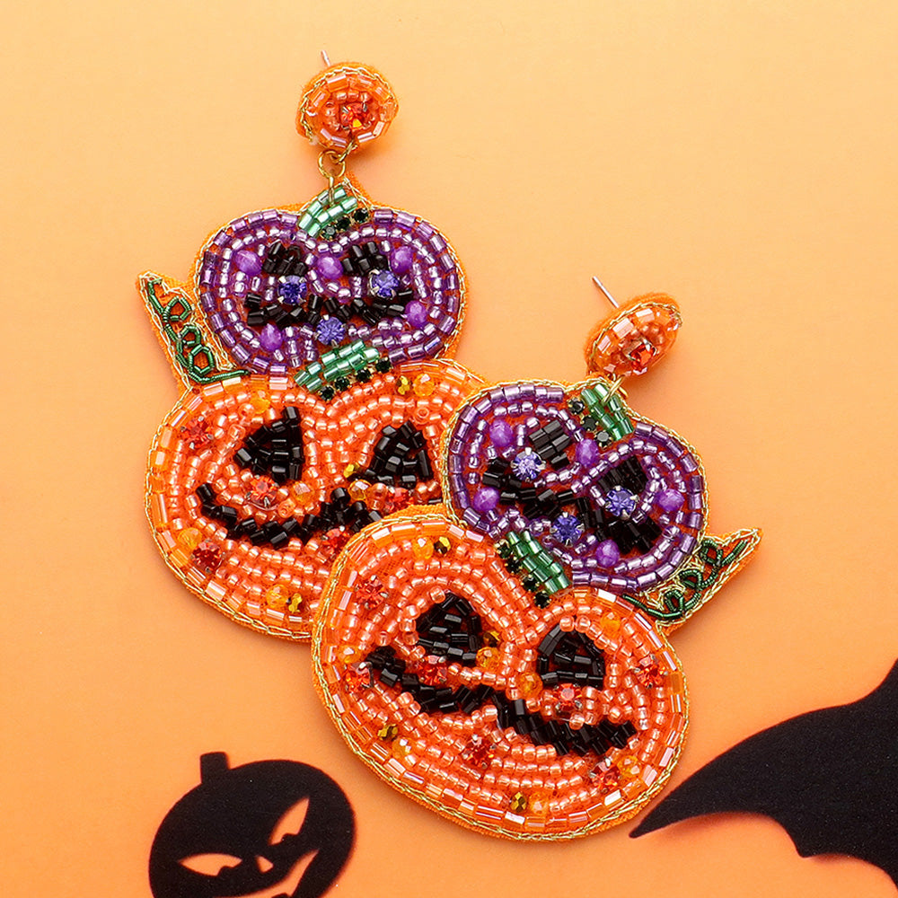 iLLASPARKZ Felt Back Halloween Pumpkin Beaded Dangle Earrings