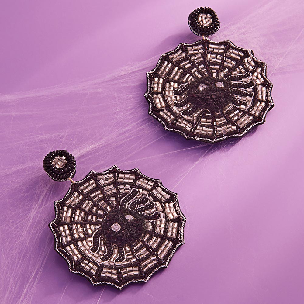iLLASPARKZ Felt Back Halloween Spider Web Seed Beaded Dangle Earrings