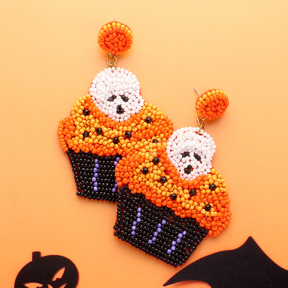 iLLASPARKZ Felt Back Halloween Theme Skull Cupcake Beaded Dangle Earrings