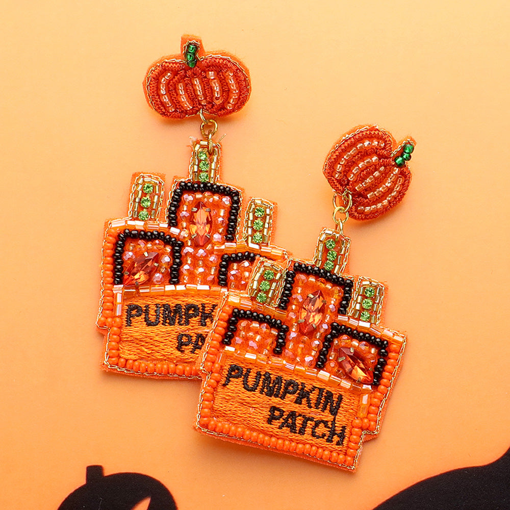 iLLASPARKZ Felt Back Pumpkin Patch Message Beaded Dangle Earrings
