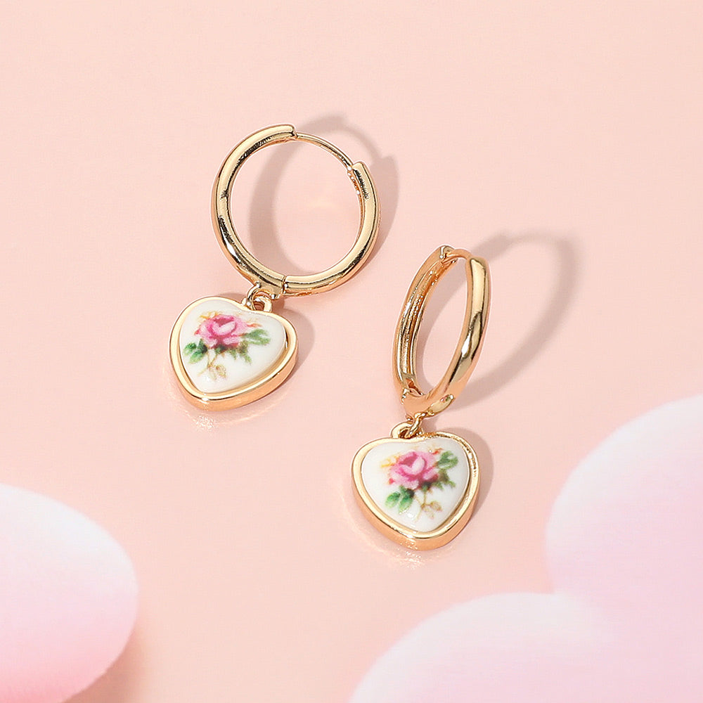 iLLASPARKZ Floral Heart Ceramic Charm Dangle Bow Earrings