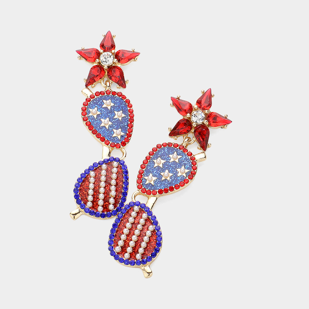 iLLASPARKZ Flower Glass Stone Pointed American USA Pearl Rhinestone Paved Teardrop link Dropdown Earrings