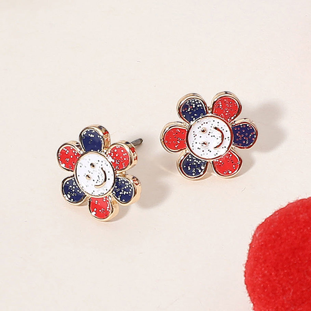 iLLASPARKZ Glittered Enamel American USA Flag Colored Smile Flower Stud Earrings