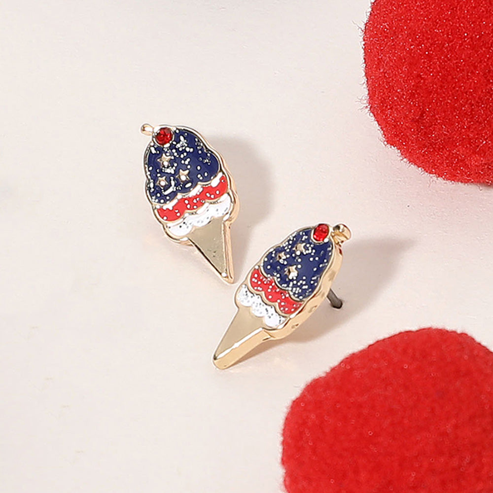 iLLASPARKZ Glittered Enamel American USA Flag Ice Cream Stud Earrings