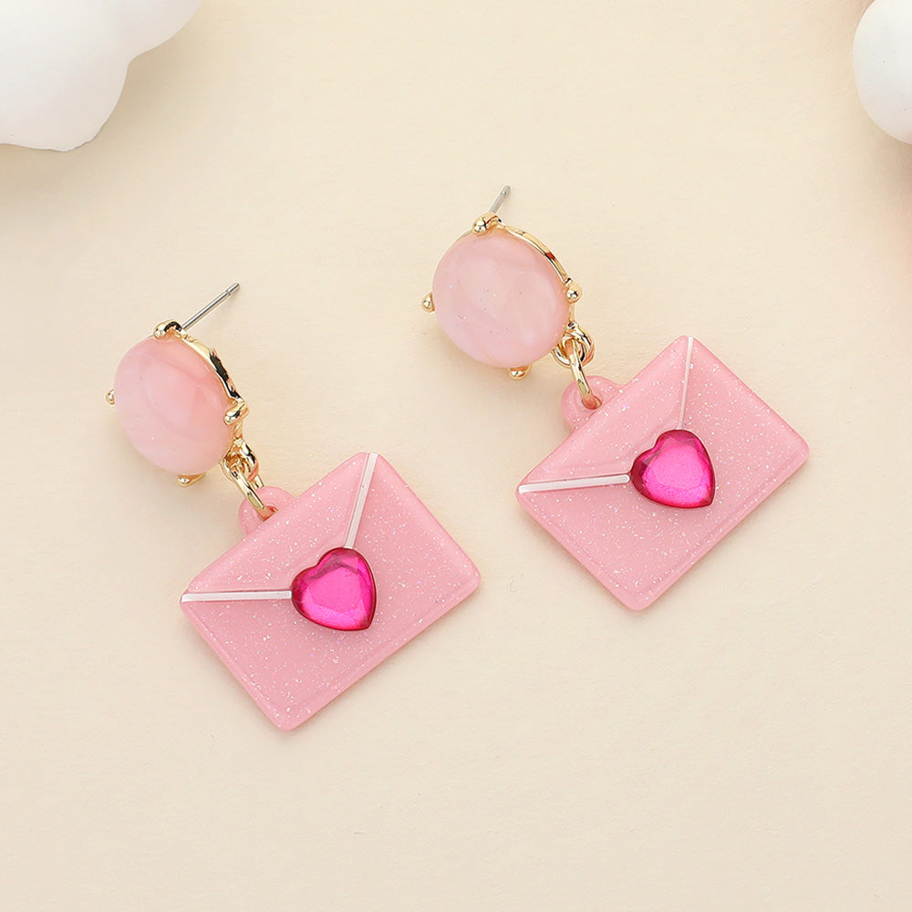 iLLASPARKZ Glittered Resin Heart Envelope Dangle Earrings