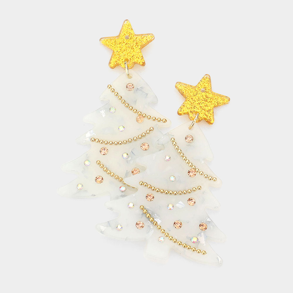 iLLASPARKZ Glittered Resin Star Christmas Tree Dangle Earrings